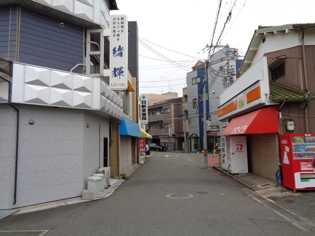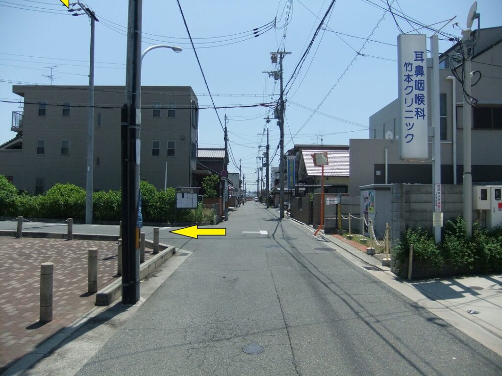 鉄板焼き屋さんとパン屋さんを過ぎたら右へ